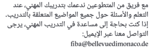 ¿Estás realizando un aprendizaje? ¿Necesitas ayuda con el aprendizaje y otras cuestiones? Entonces nuestro equipo de formación es el lugar adecuado para ti. Inscripción e información: fiba@bellevuedimonaco.de“