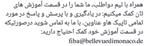 Ти проходиш Ausbildung? Потрібна допомога з навчанням та іншими питаннями? Тоді наша команда з навчання — це те, що тобі потрібно. Реєстрація та інформація: fiba@bellevuedimonaco.de“