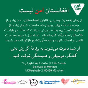 Mit einer Reihe von Expert:innen werden wir im ersten Panel die aktuelle politische, wirtschaftliche und soziale Lage in Afghanistan erörtern. Auf dem zweiten Panel werden wir die Situation von Menschen mit Aufnahmezusage in Islamabad sowie drohende Abschiebungen aus Deutschland thematisieren. Anschließend an das zweite Panel soll es Gelegenheit zum Austausch geben bei Essen und Musik.