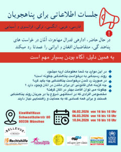 Wir laden alle geflüchteten Menschen, die Persisch (Dari/Farsi), Arabisch, Englisch oder Türkisch sprechen, herzlich zu einer Informationsveranstaltung ein.
