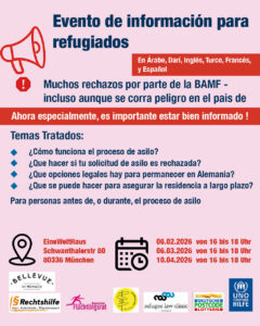 Veranstaltende: Migration macht Gesellschaft e.V., Bayerischer Flüchtlingsrat, Münchner Flüchtlingsrat, Bellevue di Monaco, Refugee Law Clinic München