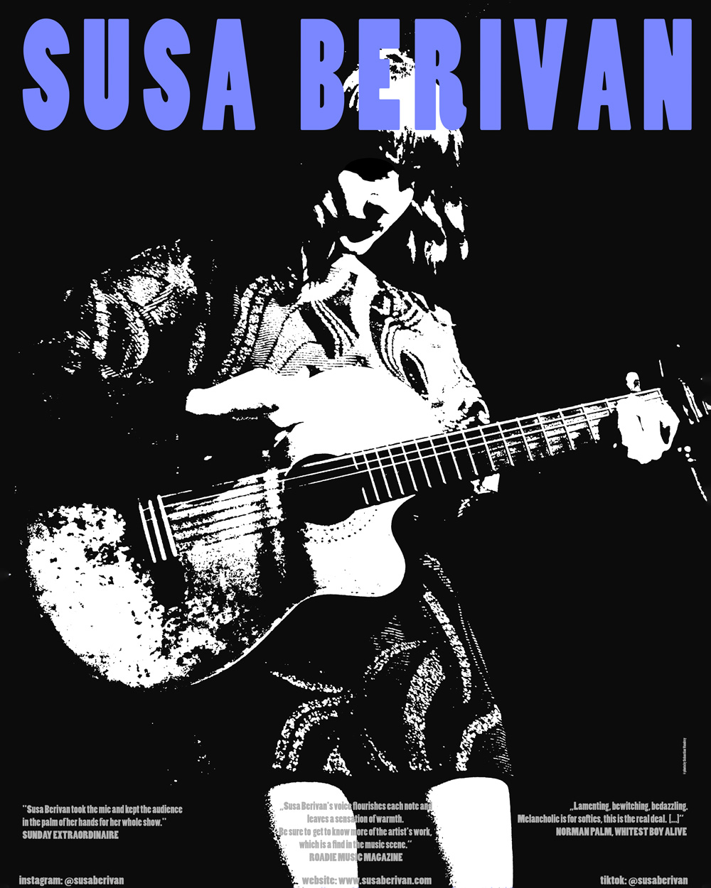 Auf kleinen bis großen internationalen Bühnen war Susa Berivan Vorgruppe der georgischen Jazz-Sensation Nino Katamadze, der französischen Alternative-Band ‚Moriarty‘, Background-Sängerin für zahlreiche Bands, spielte E-Gitarre für Glamrocker Jemek Jemowit/Zygmunt Blask und sang Hot Jazz mit Mitgliedern des Syncopation Orchestra. Sie hat mehrere Bootleg-Alben veröffentlicht – und tourt im Oktober durch ganz Deutschland.