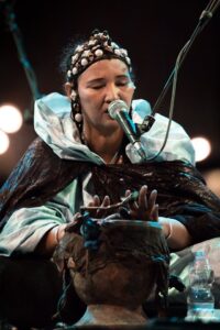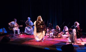 Tartit’s concerts are an invitation to travel to the desert. Inviting and almost hypnotic, this music inevitably leads you into the mystical world of the Kel Tamasheq (a people who speak Tamasheq, the language of the Tuareg). The magic of the performance is enhanced by the beauty of the traditional dresses and authentic instruments. The songs are made up of traditional and modern melodies.