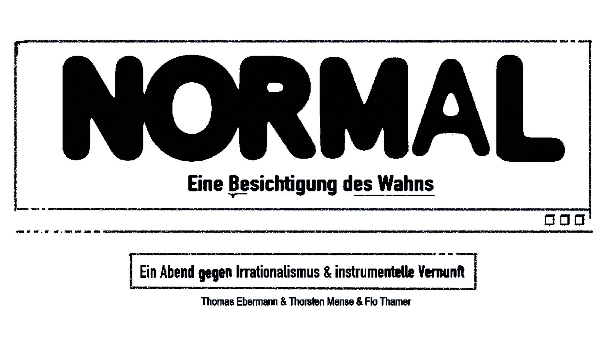 Am 17. Oktober nehmen Thomas Ebermann, Thorsten Mense und Flo Thamer im Bellevue di Monaco die „Normalität“ unserer Gesellschaft satirisch und kritisch unter die Lupe. Ein Abend gegen Irrationalismus und instrumentelle Vernunft – klug, bissig, unbequem.